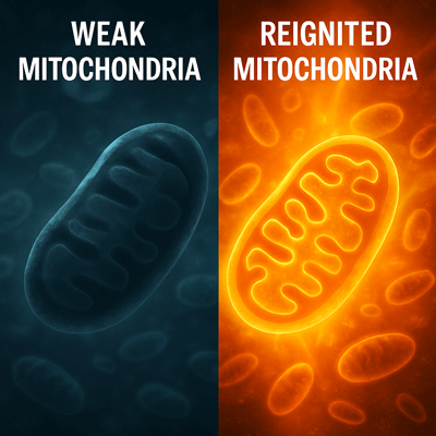 But when mitochondria become sluggish or depleted, metabolism slows down, fat storage increases, and energy levels crash.b